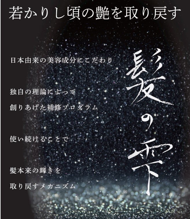 髪の雫は、日本の伝統的な美容技術と最新の科学技術が融合した製品です。厳選された日本由来の成分と最新の水素技術が、髪の内側からケアし、ダメージを修復します。独自の処方で、髪をより健康で輝かせることができます。